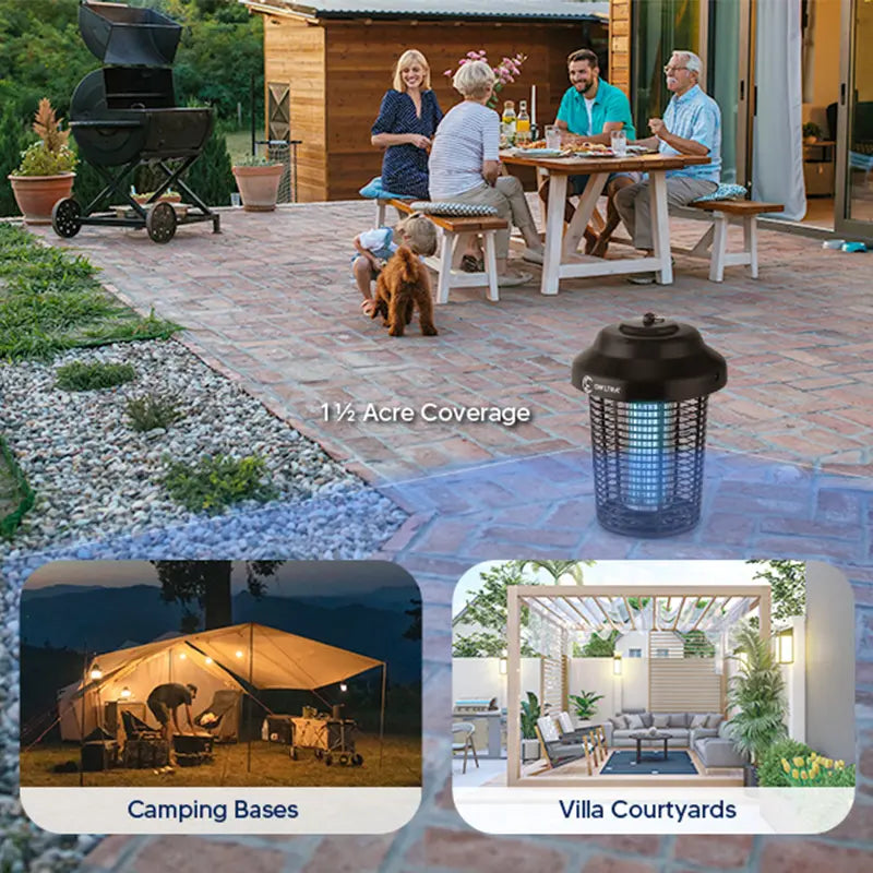 OWLTRA OMT-E80 outdoor electronic insect killer attracts a wide range of insects including mosquitoes, gnats, aedes mosquitoes, flies, moths, and more!