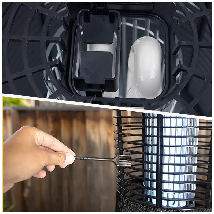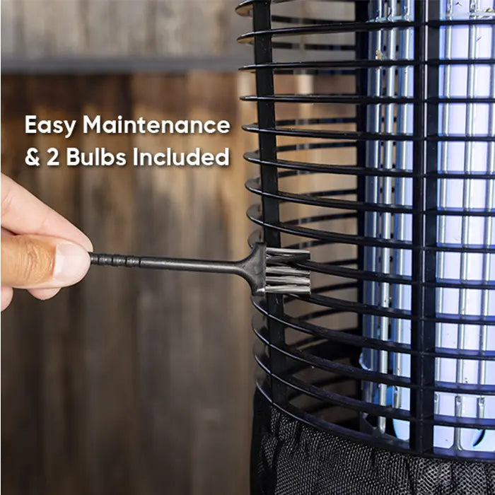 The Mosquito Killer Lamp is equipped with a self-cleaning grid that requires no special maintenance other than cleaning insect debris from the bottom of the unit. It also comes with a soft brush for quick and easy cleaning.