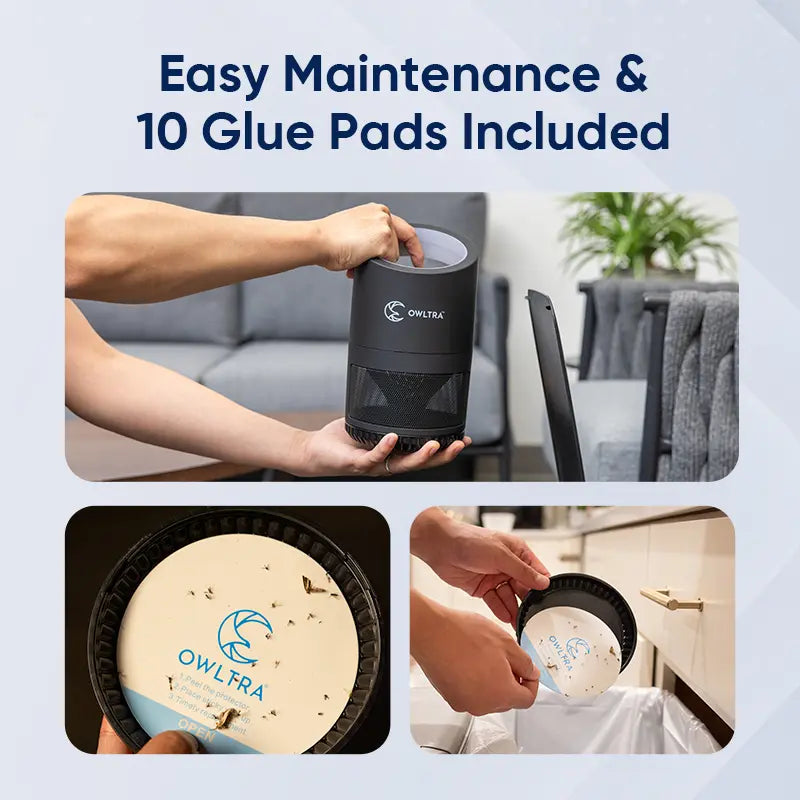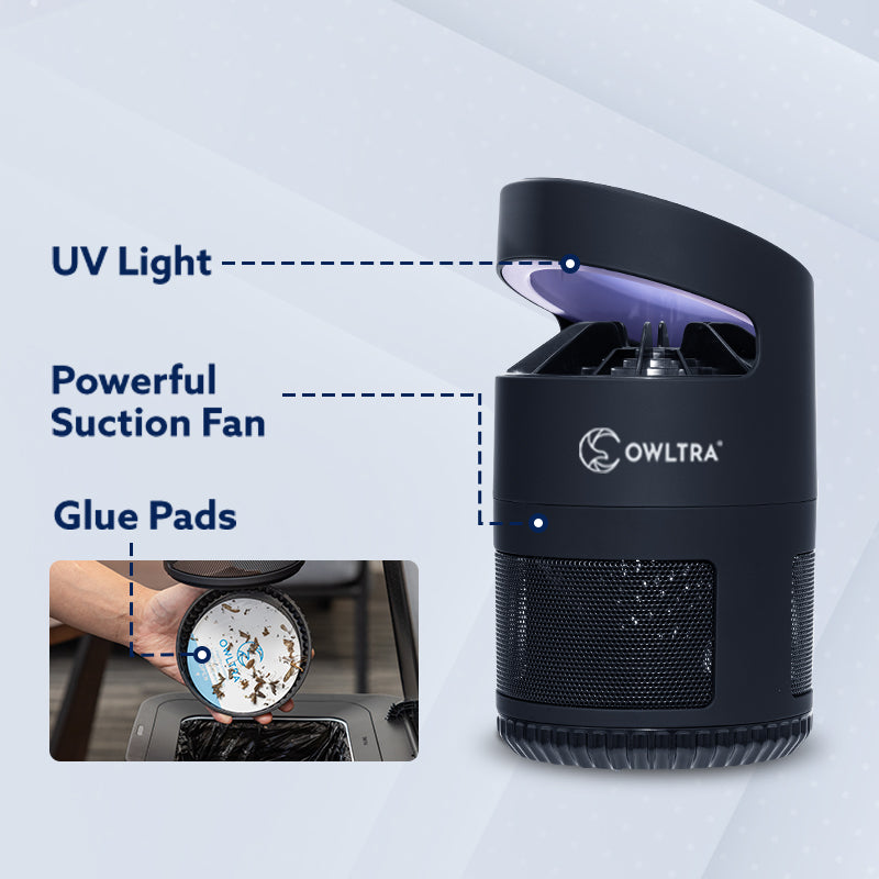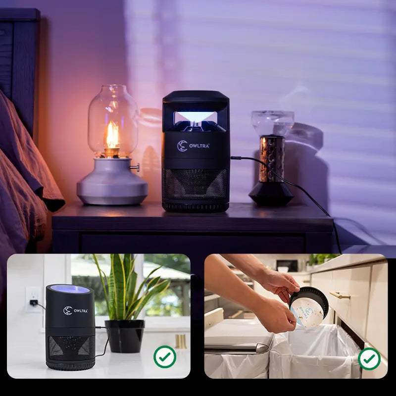 OWLTRA indoor electronic insect trap attracts a wide range of insects including fruit flies, mosquitos, moths, gnats, and more!