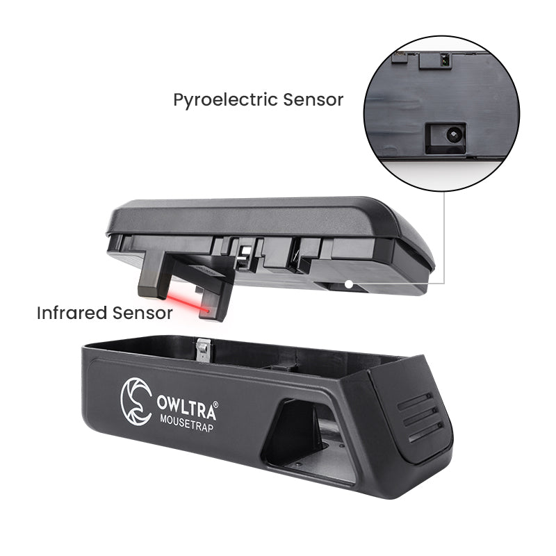 The electronic trap only activates when the Pyroelectric and the Infrared Sensors detect a mouse inside the trap in sync, preventing false zaps while protecting children and small pets.